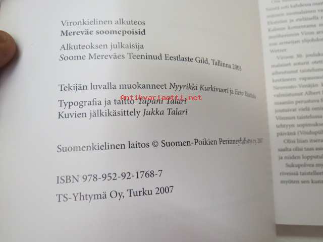 | Saatavilla | 1 kpl | | Julkaisuvuosi | 2007 | | Sivuja | 400 | | Painos | 1. | | Kunto | K2 | | Sidonta/painoasu | Nidottu (pehmeäk.) | | ISBN | 978-952-92-1768-7 | | Kielet | Suomi |