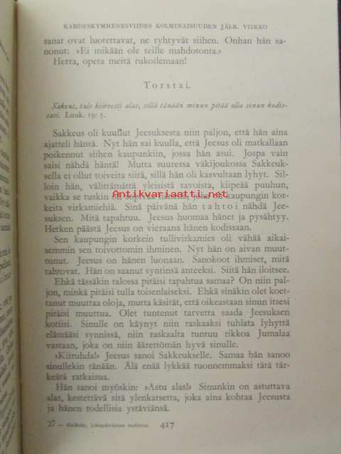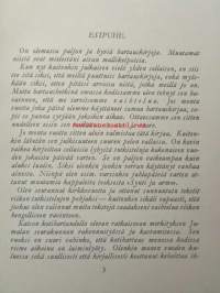 | Saatavilla | 1 kpl | | Julkaisuvuosi | 1936 | | Sivuja | 427 | | Kunto | K2 | | Sidonta/painoasu | Sidottu (kovak.) | | Kielet | Suomi |