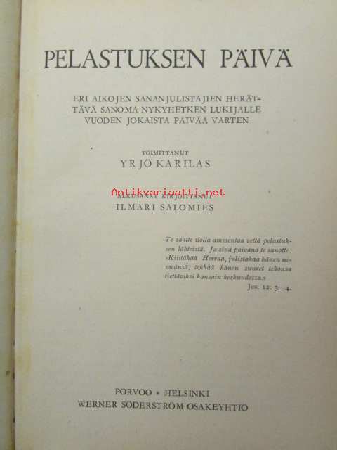 pelastuksen päivä - Kotihartauskirja, eri aikojen sananjulistajien herättävä sanoma nykyhetken lukijalle vuoden jokaista päivää varten