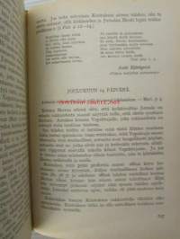 | Saatavilla | 1 kpl | | Julkaisuvuosi | 1946 | | Sivuja | 583 | | Painos | 1 | | Kunto | K2 | | Kansipaperi K2 | | Sidonta/painoasu | Sidottu (kansipaperit) | | Kielet | Suomi |