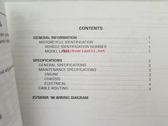 Yamaha XVS650A '98 (5BNA-SE1) Service Information - Tehtaan alkuperäinen, huolto-ohjeita sis. sähkökaaviot (Ei huolto-ohjekirja)