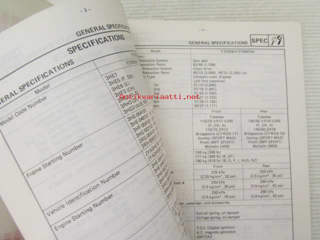 Yamaha FZR500 / FZR600(B) '91 (3HE-SE4) Service Information - Tehtaan alkuperäinen, huolto-ohjeita sis. sähkökaaviot (Ei huolto-ohjekirja)