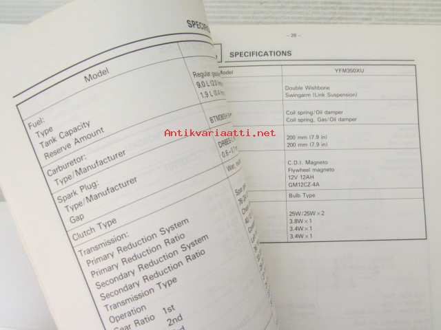 Yamaha YFM350OXU '88 (2XK-SE1) Service Information - Tehtaan alkuperäinen, huolto-ohjeita sis. sähkökaaviot (Ei huolto-ohjekirja)