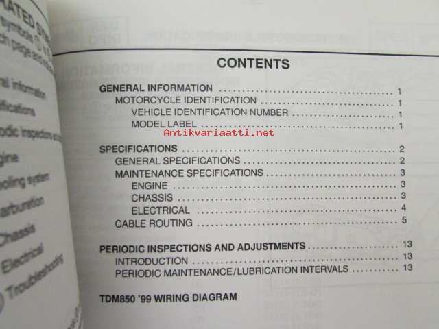 Yamaha TDM850 '99 (4TX-SE3) Service Information - Tehtaan alkuperäinen huolto-ohjeita sis. sähkökaaviot (Ei huolto-ohjekirja)