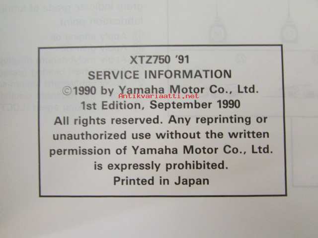 Yamaha XTZ750 '91 (3LD-SE4) Service Information - Tehtaan alkuperäinen huolto-ohjeita sis. sähkökaaviot (Ei huolto-ohjekirja)