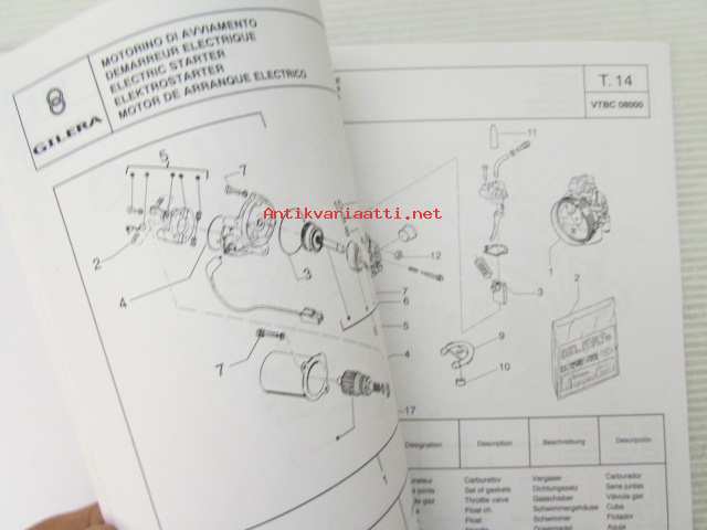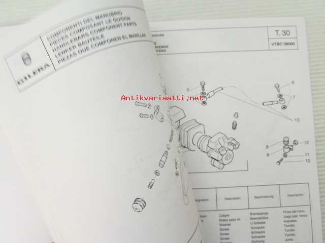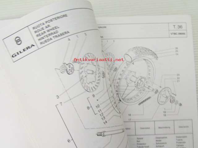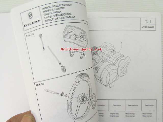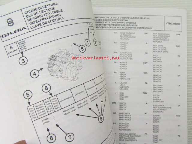 Gilera H@K Catalogue of Spare Parts 579117 -varaosaluettelo, katso kuvista mallimerkintä tarkemmin
