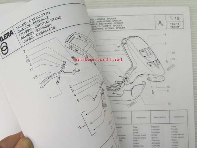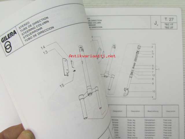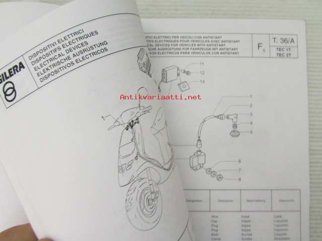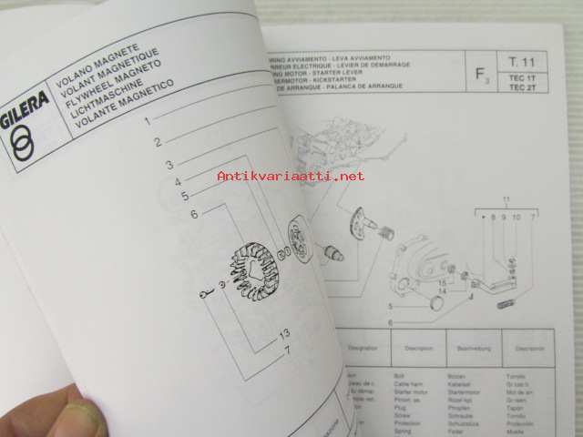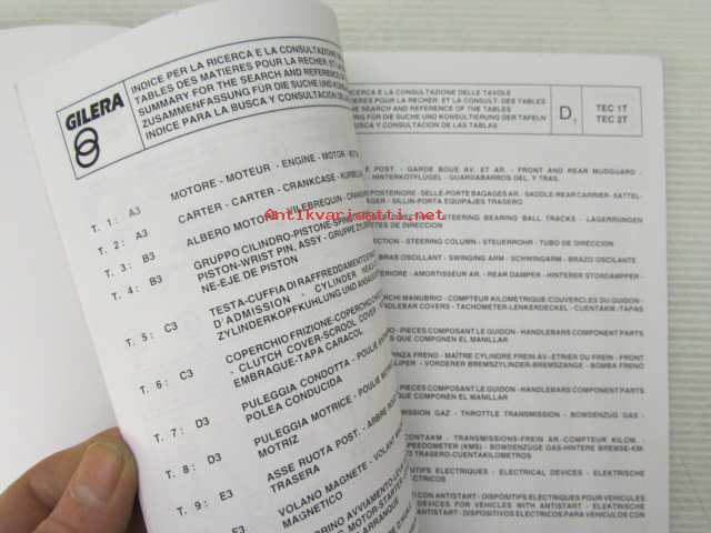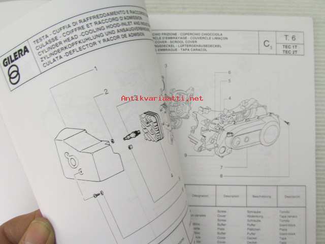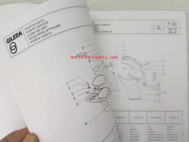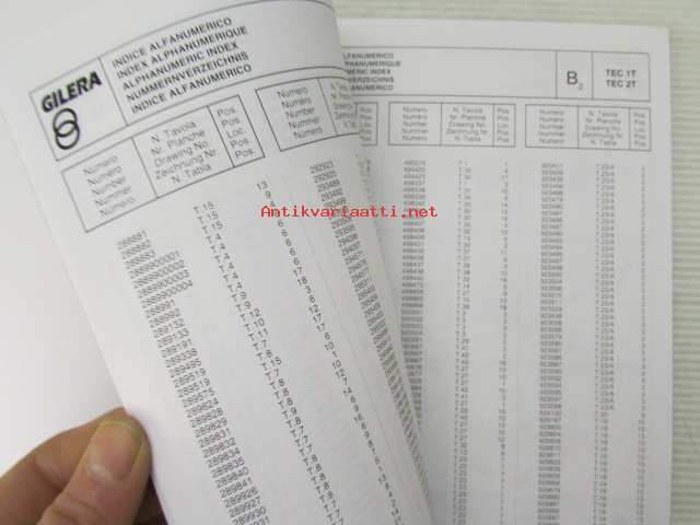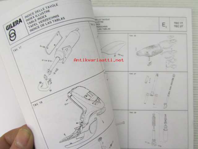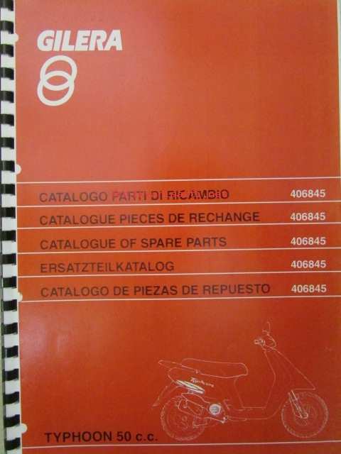 Gilera Typhoon 50 c.c. Catalogue of Spare Parts 406845 -varaosaluettelo, katso kuvista mallimerkintä tarkemmin