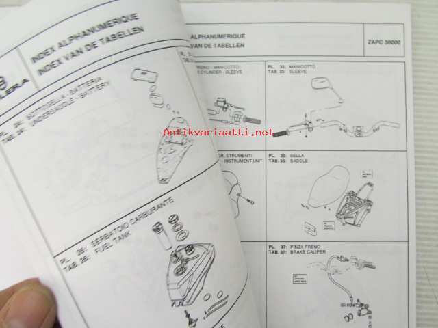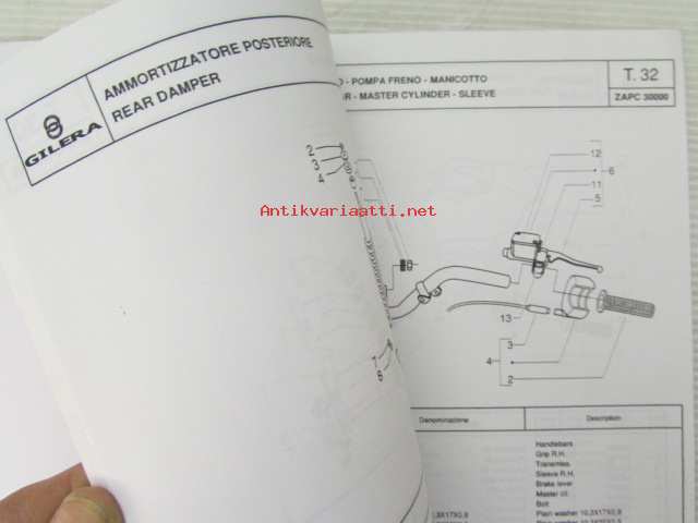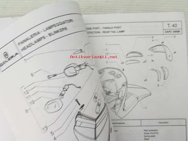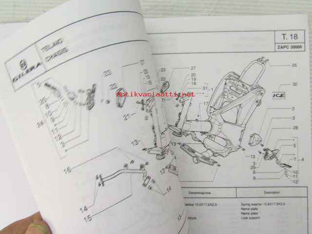 Gilera ICE 50 cc Catalogue of Spare Parts 594883 -varaosaluettelo, katso kuvista mallimerkintä tarkemmin