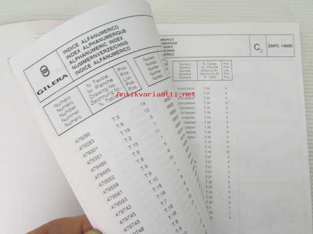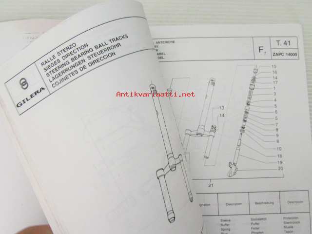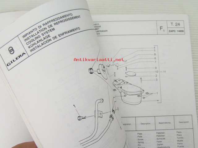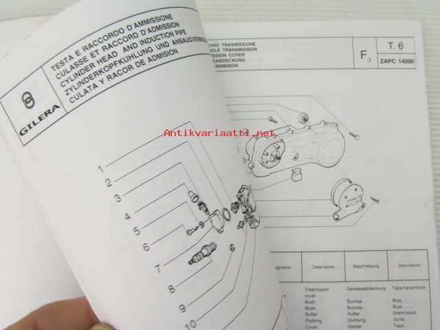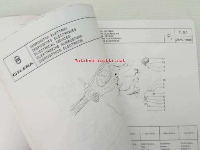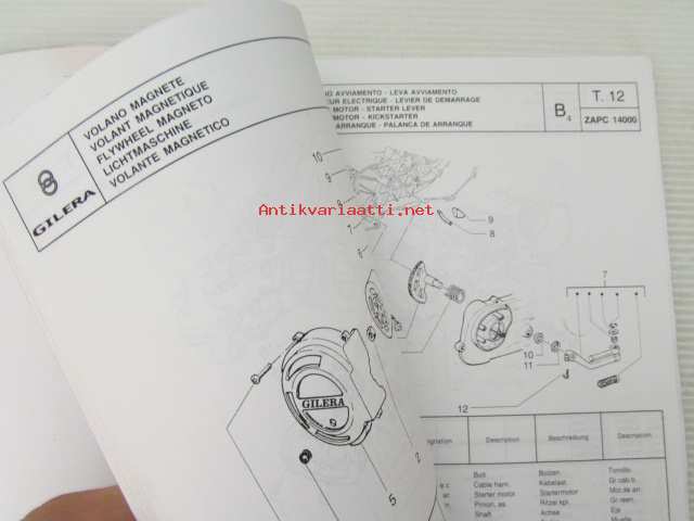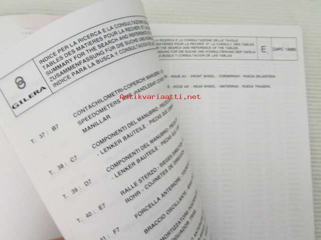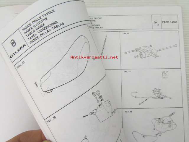 Gilera Runner Catalogue of Spare Parts 578121-varaosaluettelo, katso kuvista mallimerkintä tarkemmin