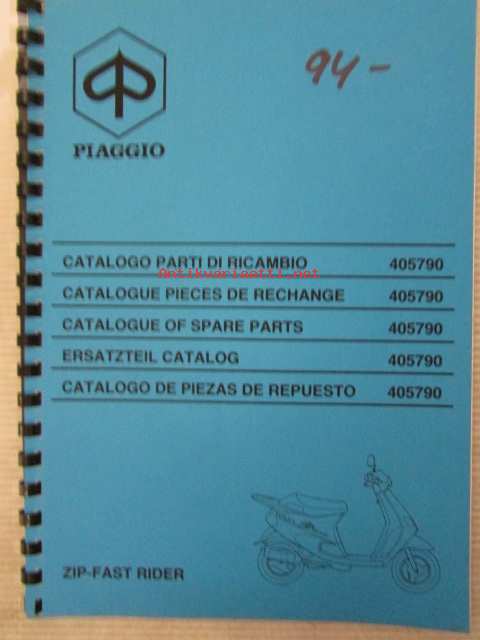 Piaggio ZIP-Fast Rider Catalogue of Spare Parts 405790 -varaosaluettelo, katso mallit kuvista tarkemmin.