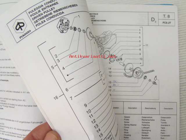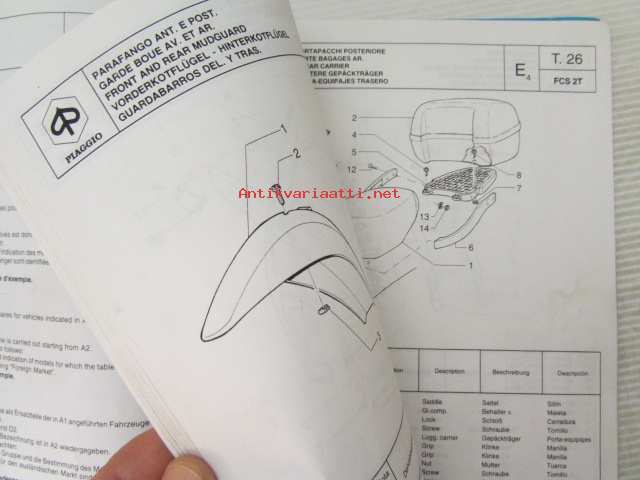 Piaggio Free F.L. Catalogue of Spare Parts 406253 -varaosaluettelo, katso mallit kuvista tarkemmin.