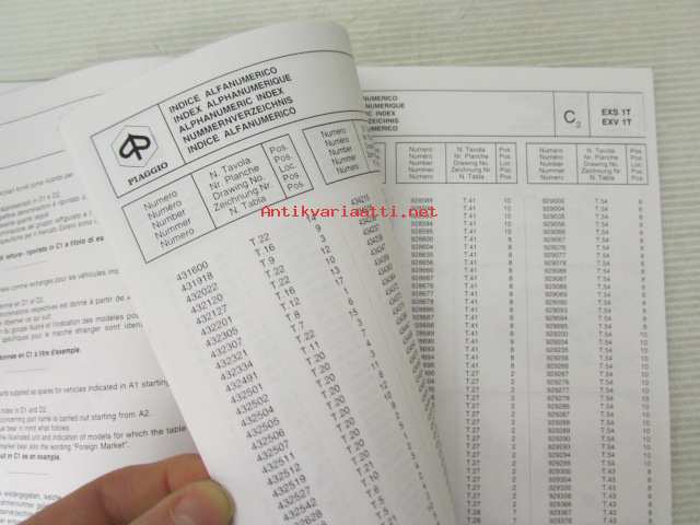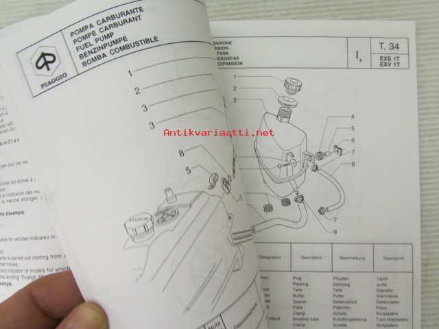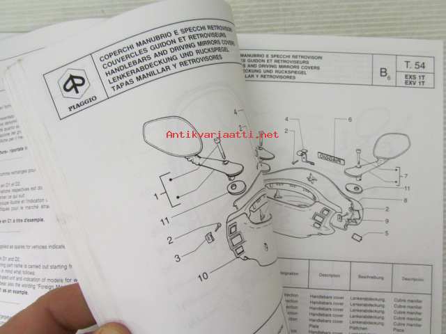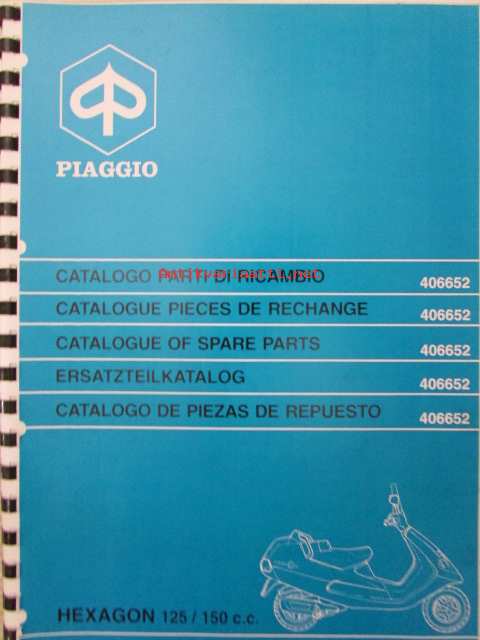 Piaggio Hexacon 125/150 c.c. Catalogue of Spare Parts 406652 -varaosaluettelo, katso mallit kuvista tarkemmin.
