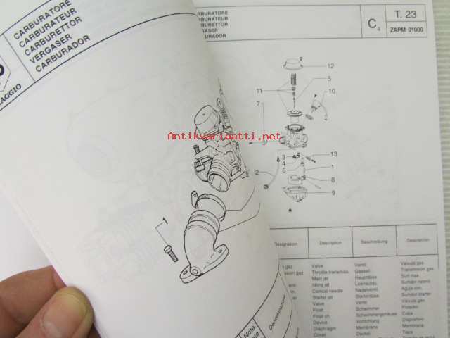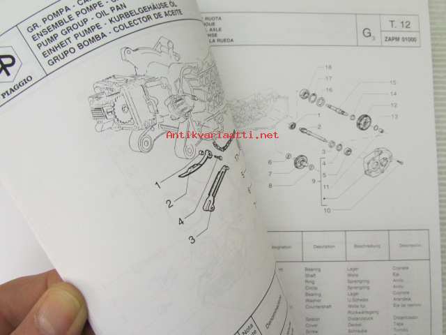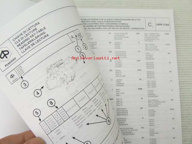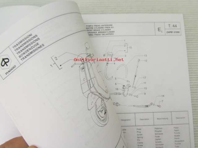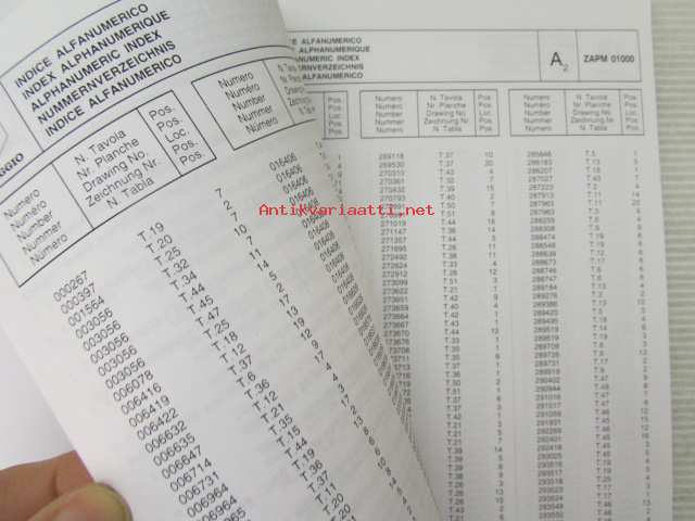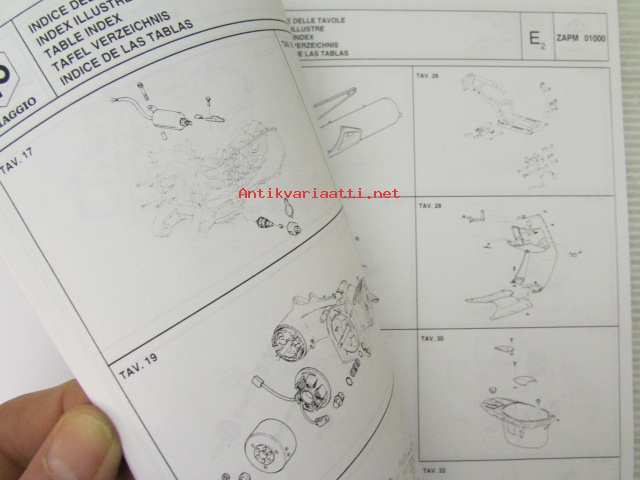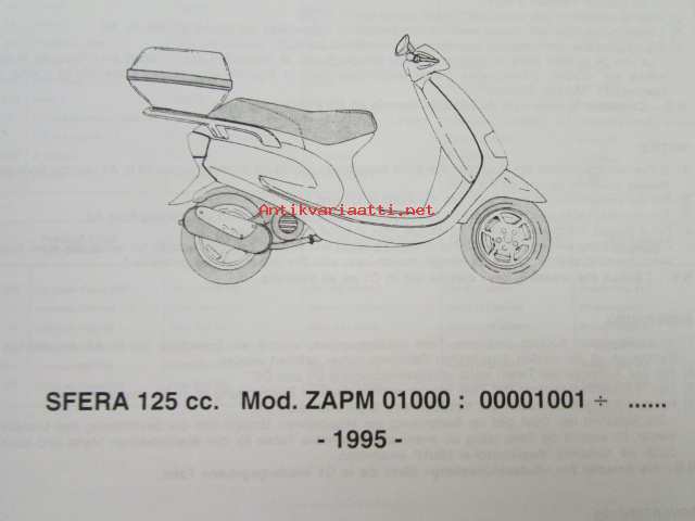 Piaggio Sfera 125 c.c. Catalogue of Spare Parts 406257 -varaosaluettelo, katso mallit kuvista tarkemmin.