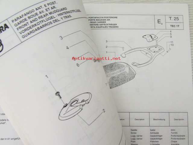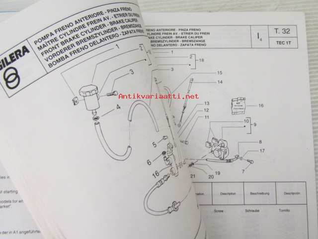 Piaggio Typhoon Catalogue of Spare Parts 406256 -varaosaluettelo, katso mallit kuvista tarkemmin.