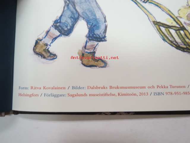 | Saatavilla | 1 kpl | | Julkaisuvuosi | 2013 | | Sivuja | 40 | | Painos | 1. | | Kunto | K3 | | Sidonta/painoasu | Kuvitettu kovakantinen | | ISBN | 978-951-98501-4-6 | | Kielet | Ruotsi |