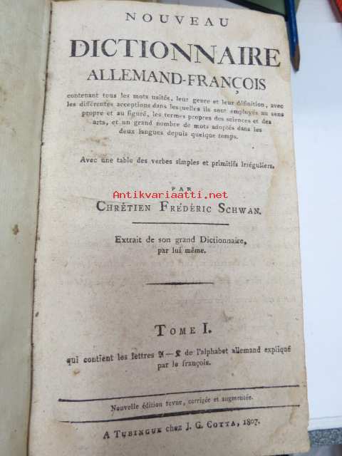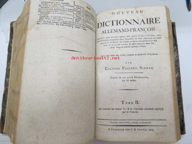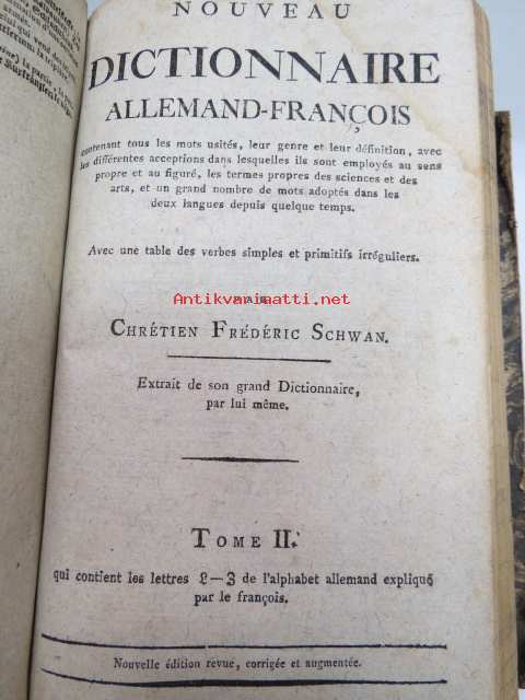 Noveau Dictionnaire allemand-francois- par Chretien Frederic Schwan Tome I-II, J.G. Cotta 1807 -sanakirja