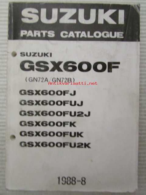 Suzuki GSX600F (GN72A / GN72FJ) GSX600FJ, GSX600FUJ, GSX600FU2J, GSX600FK, GSX600FUK, GSX600FU2K Parts Catalogue -varaosaluettelo