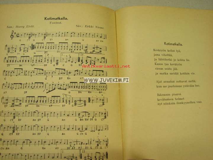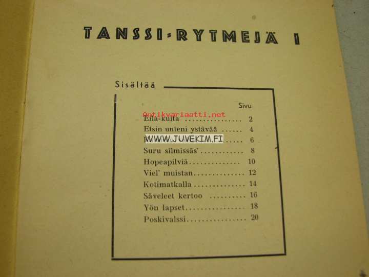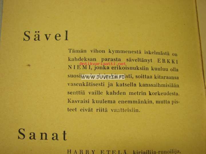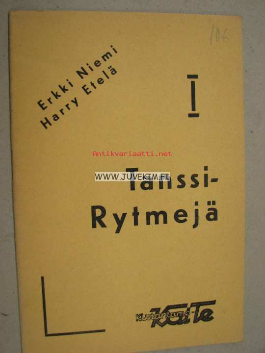 | Saatavilla | 1 kpl | | Julkaisuvuosi | 195? | | Sivuja | 22 | | Kunto | K3 | | Sidonta/painoasu | Nidottu (pehmeäk.) | | Kielet | Suomi |