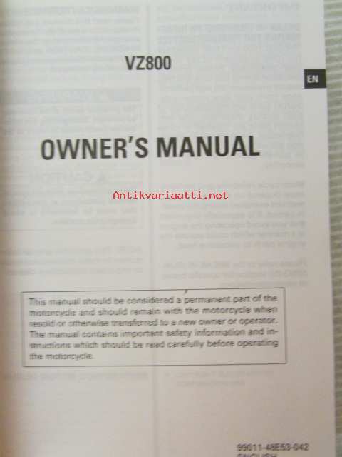 Suzuki VZ800 Owner´s manual -käyttöohjekirja