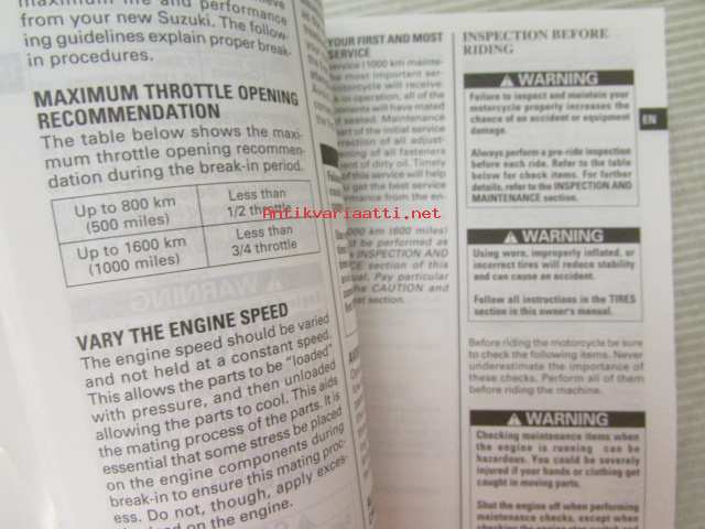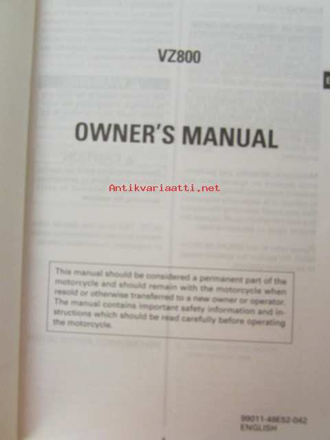 Suzuki VZ800 Owner´s manual -käyttöohjekirja