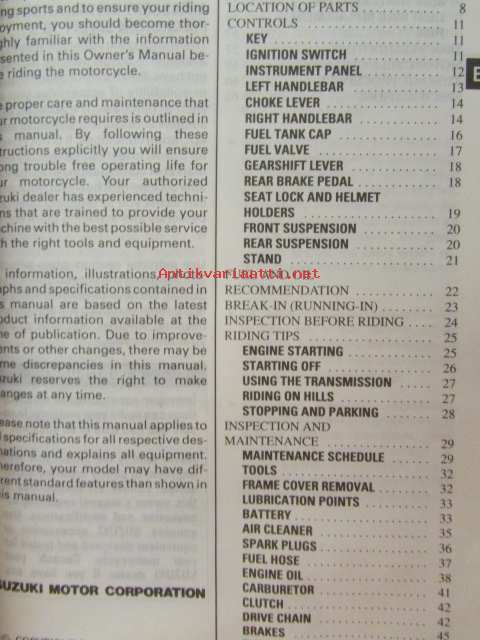 Suzuki GS500E Owner´s manual -käyttöohjekirja