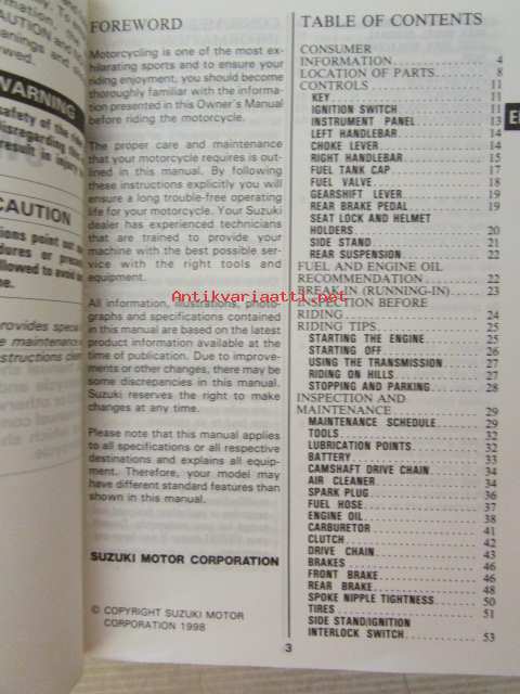 Suzuki GZ125 Owner´s manual -käyttöohjekirja