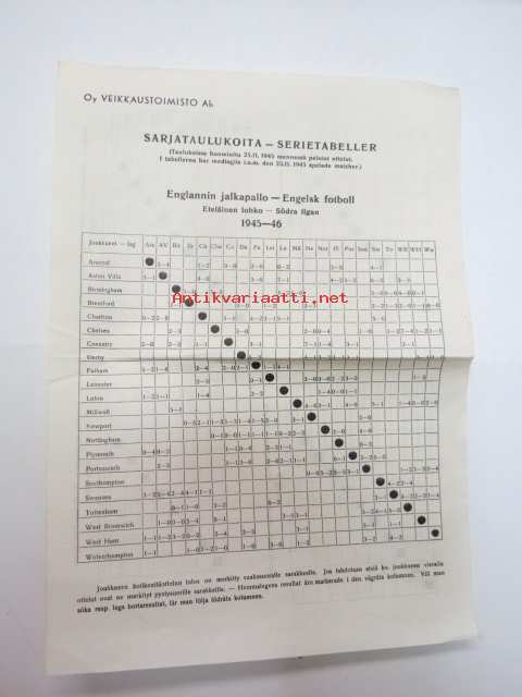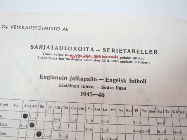 Oy Veikkaustoimisto Ab - Sarjataulukoita - Serietabeller / Englannin jalkapallo - Engelsk fotboll / Eteläinen lohko - Södra liga 1945-46 + Käsipallon