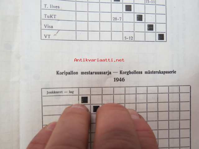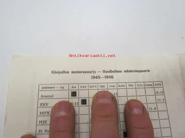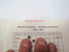 Oy Veikkaustoimisto Ab, 1945Oy Veikkaustoimisto Ab - Sarjataulukoita - Serietabeller / Englannin jalkapallo - Engelsk fotboll / Eteläinen lohko - Södra liga 1945-46 + Käsipallon mestaruussarja + Jääkiekko-mestaruussarja + Käsipallon Suomisarja + Koripallon mestaruussarja