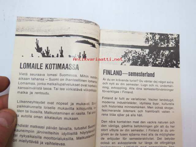 | Saatavilla | 1 kpl | | Sivuja | 24 | | Kunto | K3 | | Sidonta/painoasu | Pienpainate | | Kielet | Suomi, Ruotsi |