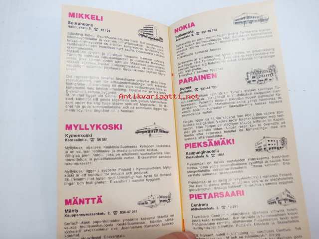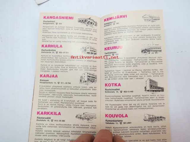 E-Hotellit / E- Hotellen suomi Finland -esite, sisältää myös huoltoasemien luettelon