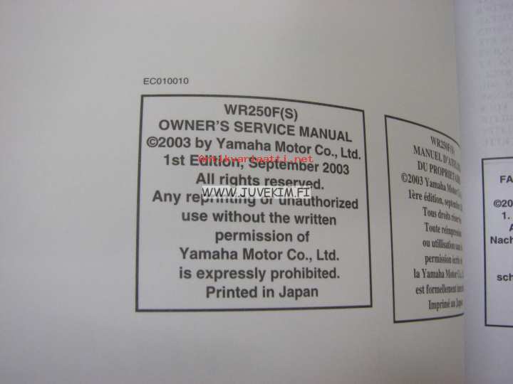 Yamaha WR250F(S) owner´s service manual -käyttäjän huolto-ohjekirja englanniksi