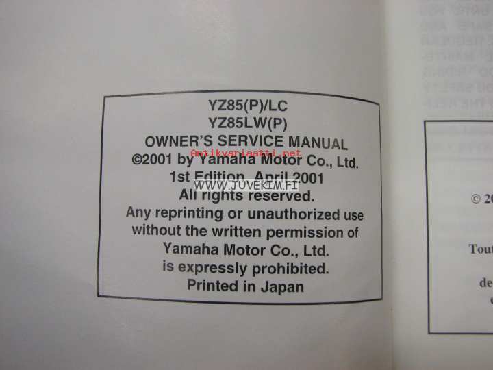 Yamaha YZ85(P)/LC YZ85LW(P) owner´s service manual -käyttäjän huolto-ohjekirja englanniksi