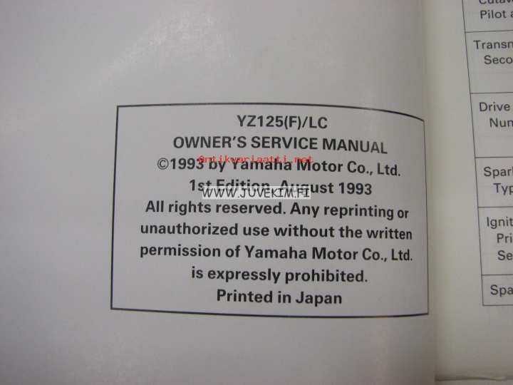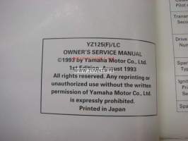 Yamaha YZ125(F)/LC owner´s service manual -käyttäjän huolto-ohjekirja englanniksi