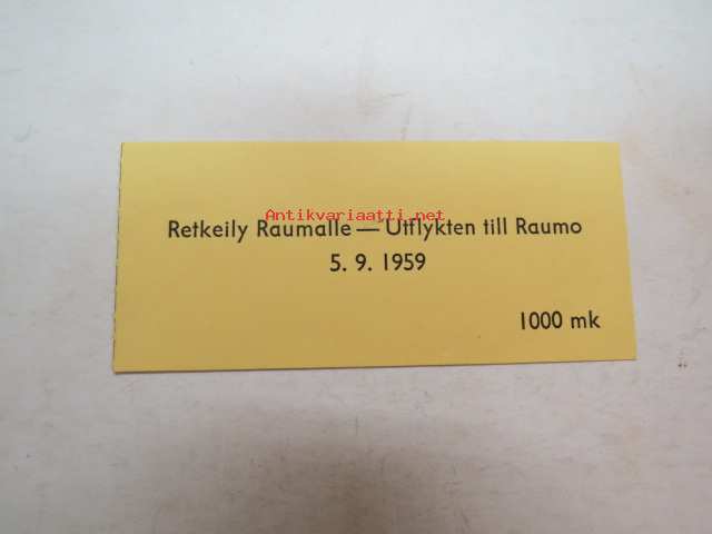 Retkeily Raumalle - Utflykten till Raumo 5.9.1959 - 100 mk -matkalippu