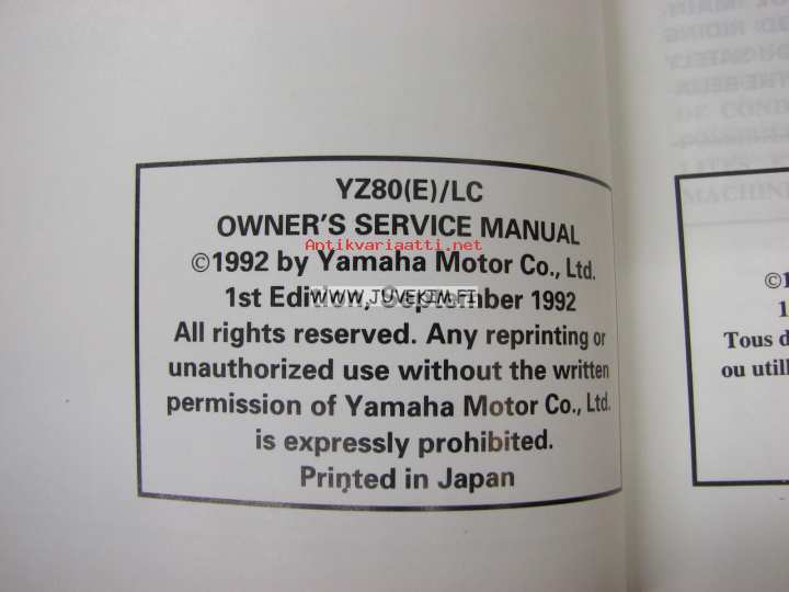 Yamaha YZ80(E)/LC owner´s service manual -käyttäjän huolto-ohjekirja englanniksi