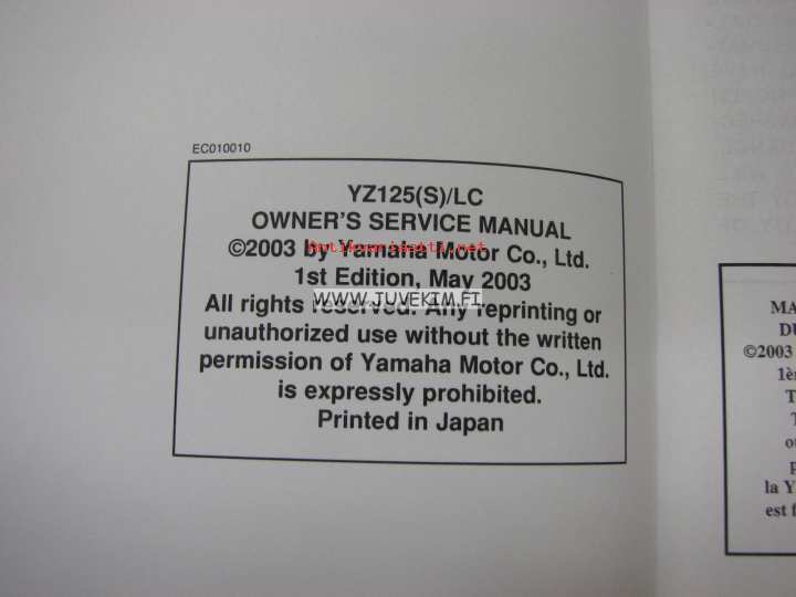 Yamaha YZ125(S)/LC owner´s service manual -huolto-ohjekirja englanniksi