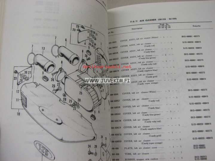 Honda CD125K3 CB125K3 CB125AK3 CL125K3 parts list -varaosaluettelo englanniksi