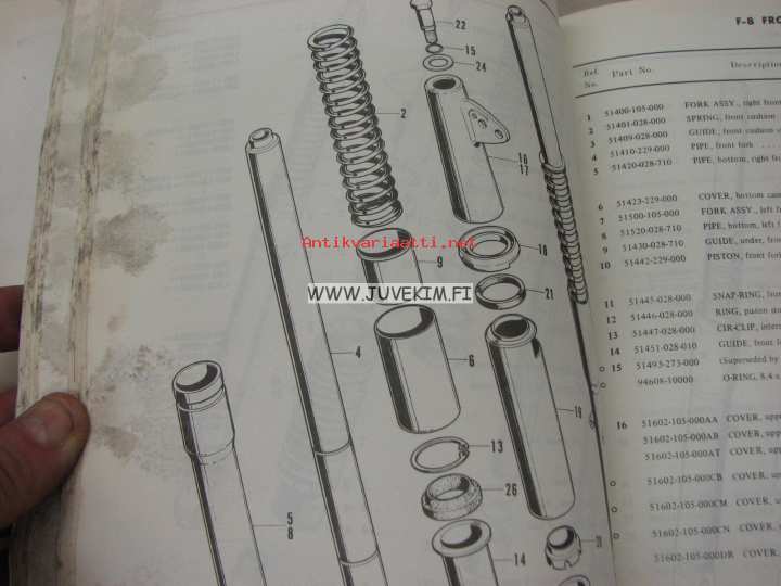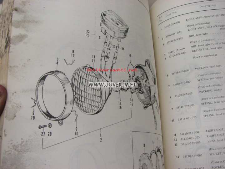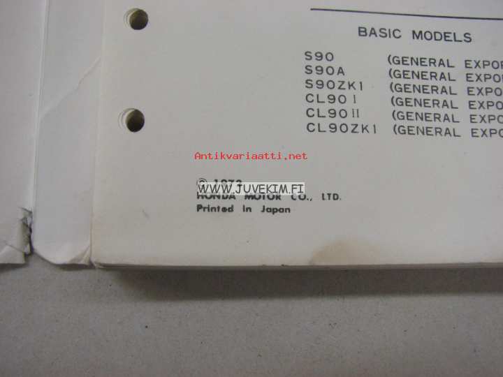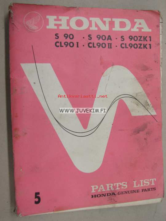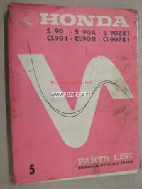 Honda S90 S90A S90ZK1 CL90 I CL90 II CL90ZK1 parts list -varaosaluettelo englanniksi