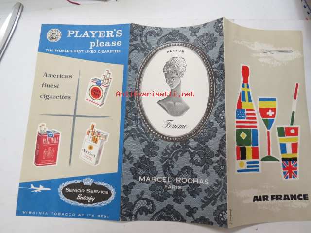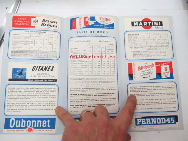 Air France in-flight hinnasto juomat / tupakka 1961 -alcohol and tobacco products price list