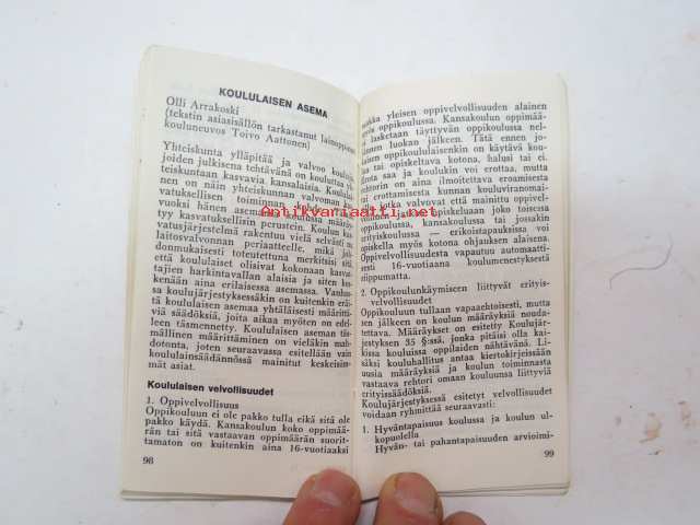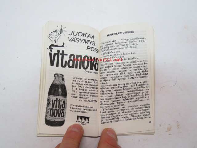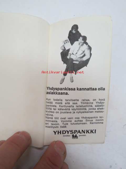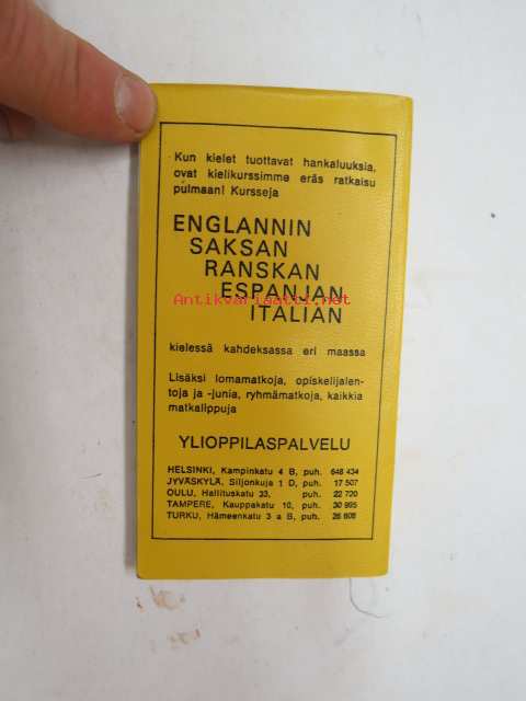 | Saatavilla | 1 kpl | | Julkaisuvuosi | 1968 | | Sivuja | 124 | | Kunto | K2 | | Sidonta/painoasu | Nidottu (pehmeäk.) | | Kielet | Suomi |