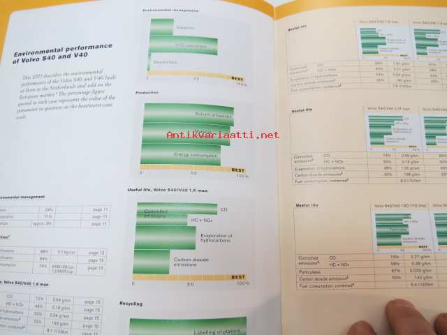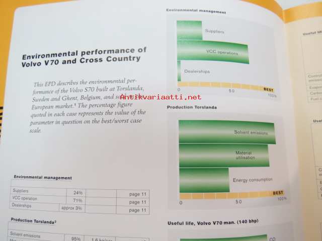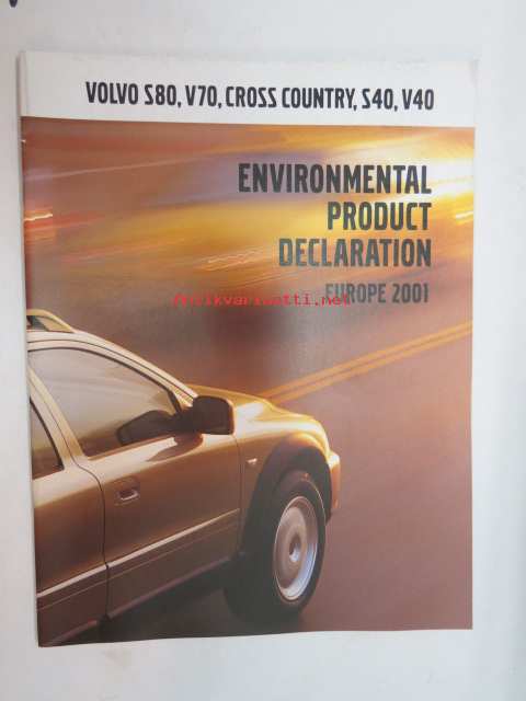 Volvo S80, V70, Cross Country, S40, V40 Environmental product declaration Europe 2001 -myyntiesite