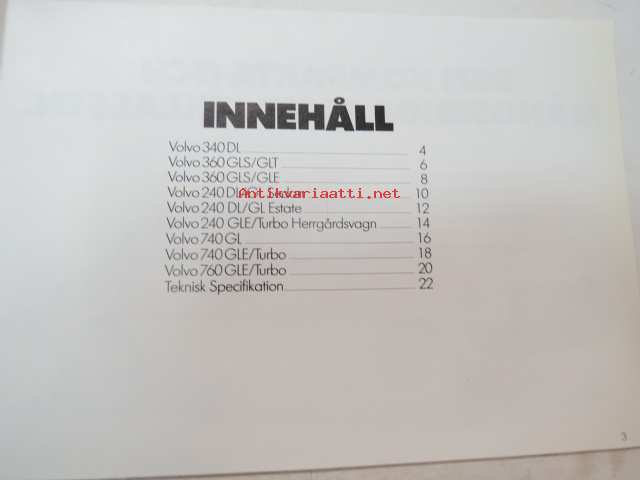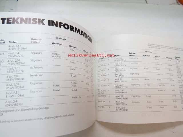 Volvo 1985 mallisto -myyntiesite / sales brochure