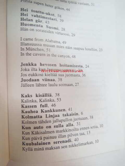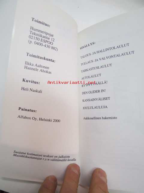 | Saatavilla | 1 kpl | | Julkaisuvuosi | 2000 | | Sivuja | 59 | | Painos | 1. | | Kunto | K3 | | Sidonta/painoasu | Nidottu (pehmeäk.) | | Kielet | Suomi |