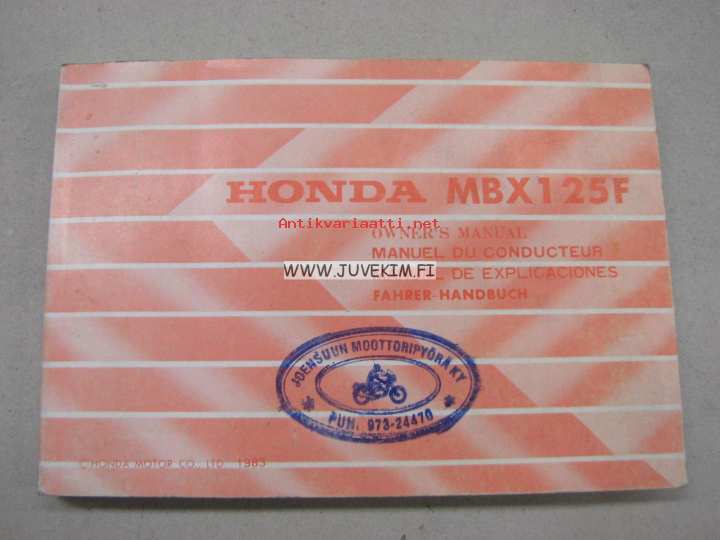 Honda MBX125F owner´s manual -omistajan käsikirja englanniksi