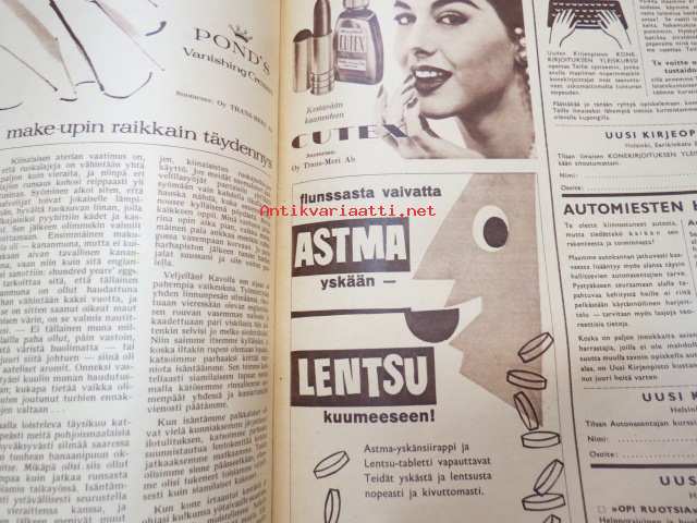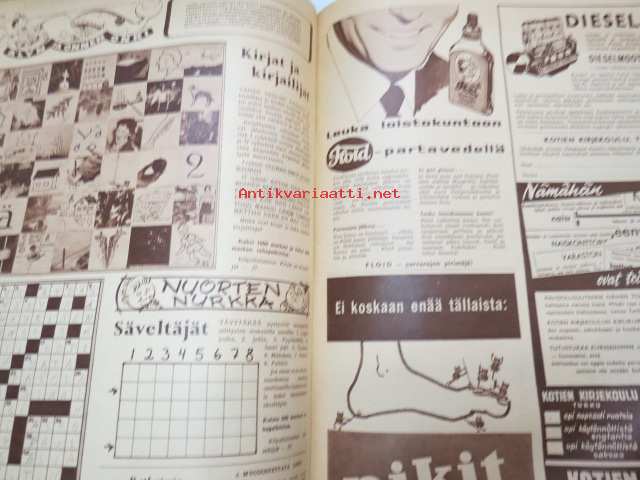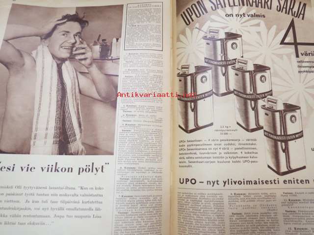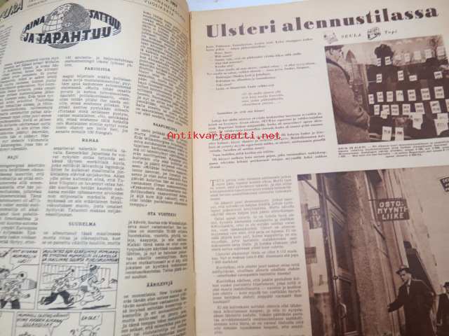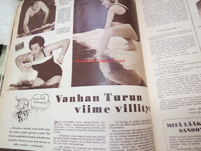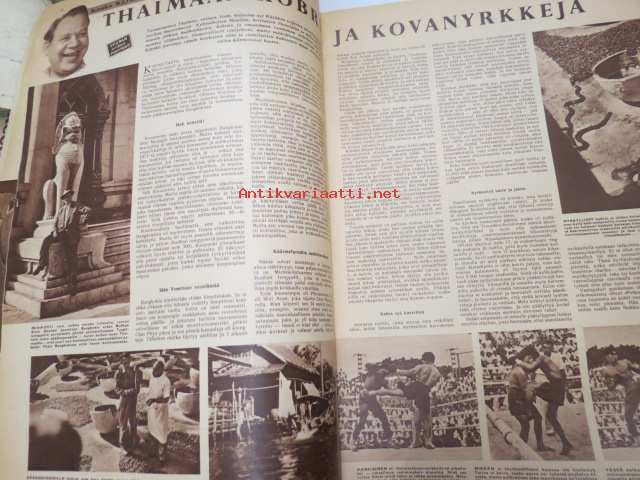 Seura 1957 nr 8, ilmestynyt 20.2.1957, sis. mm. seur. artikkelit / kuvat / mainokset; Tavataan Salpausselällä!, Ulsteri alennustilassa, Kauko Käyhkö kaukomailla - Thaimaan kobria ja kovanyrkkejä, Teräsmummu Katri Kaasalainen - Huittinen - 75 vuotta - nosti painoja 98 kg, Vanhan Turun viime villitys - avantouinti, Speedwayajaja Antti Pajari - Turku, Leelia boa-käärme Keravalla - asuu johtaja Unto Sariolan kellarissa, Astma & Lentsu-lääkkeet, Floid-partavesi, Corrigan-painonalennuslääke, ym.