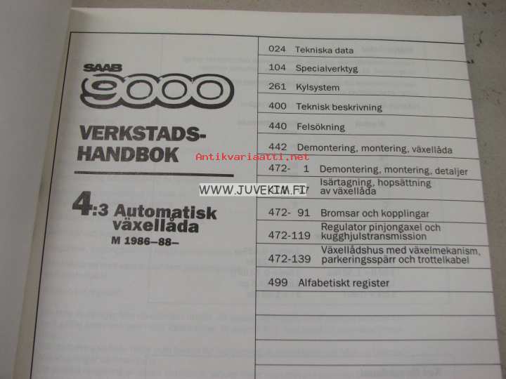 Saab 9000 Verkstadshandbok 4:3 Automatisk växellåda M 1986-88- -korjaamokirjasarjan osa ruotsiksi