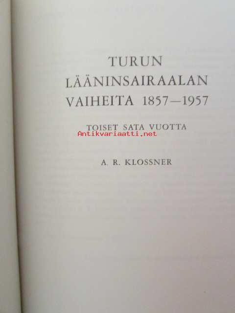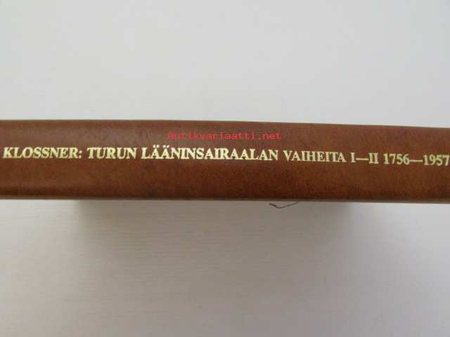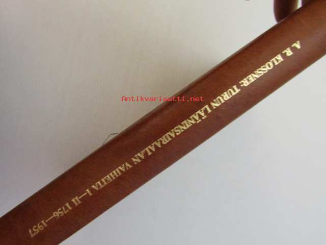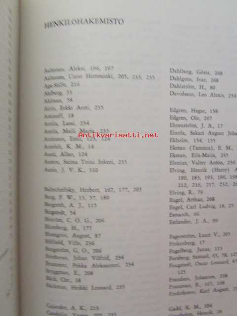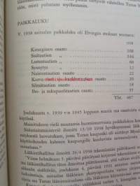 | Saatavilla | 1 kpl | | Julkaisuvuosi | 1956 | | Sivuja | 337 | | Painos | 1. | | Kunto | K3 | | Sidonta/painoasu | Nahkaselkä | | Kielet | Suomi |