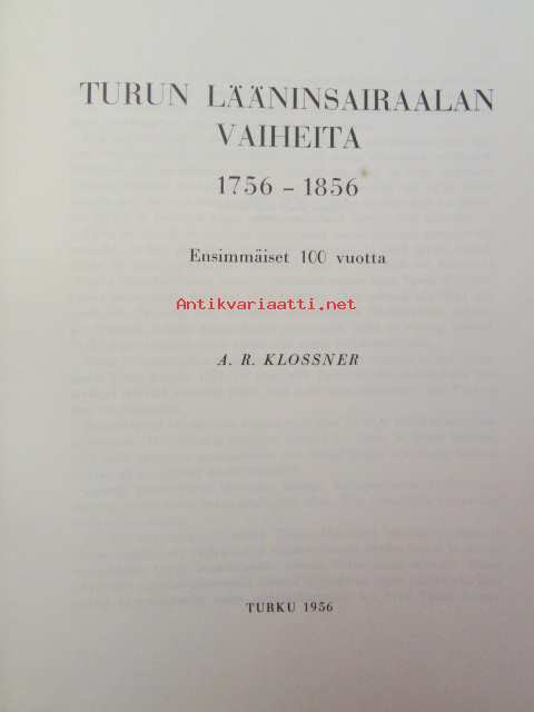 Turun lääninsairaalan vaiheita 1756-1856 - ensimmäiset 100 vuotta