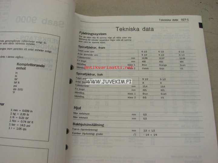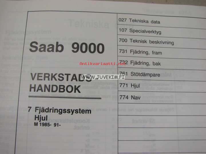 Saab 9000 Verkstadshandbok 7 Fjädring, Hjul M 1985- 91- -korjaamokirjasarjan osa ruotsiksi