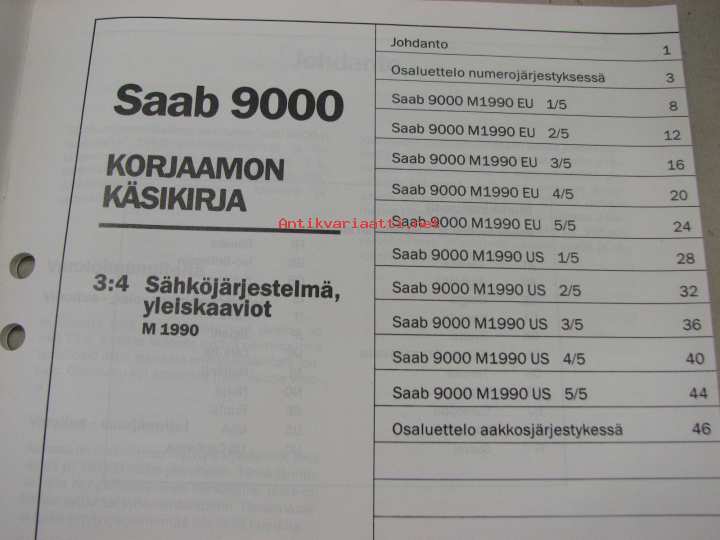 Saab 9000 Korjaamon käsikirja 3:4 Sähköjärjestelmä, yleiskaaviot M1990 -korjaamokirjasarjan osa